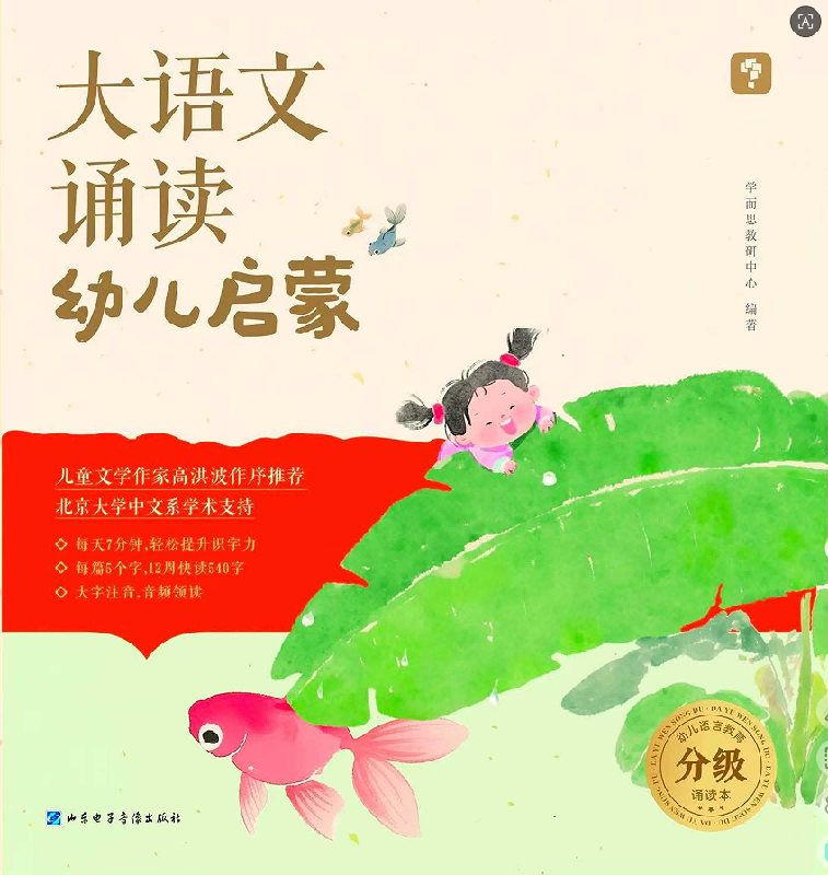 本书是在《大语文分级诵读》系列的基础上,针对3-6岁低龄儿童设计的语文诵读启蒙类读物。全书精心编选文质兼美的名家名篇,涵盖《静夜思》《悯农》等朗朗上口的古诗、《千字文》《三字经》等声律和谐的蒙学韵文和《小小的船》《乡愁》《寄小读者》等浅显的现代诗歌、儿童散文,还穿插多种诵读互动环节,增强学习的实践性和趣味性。