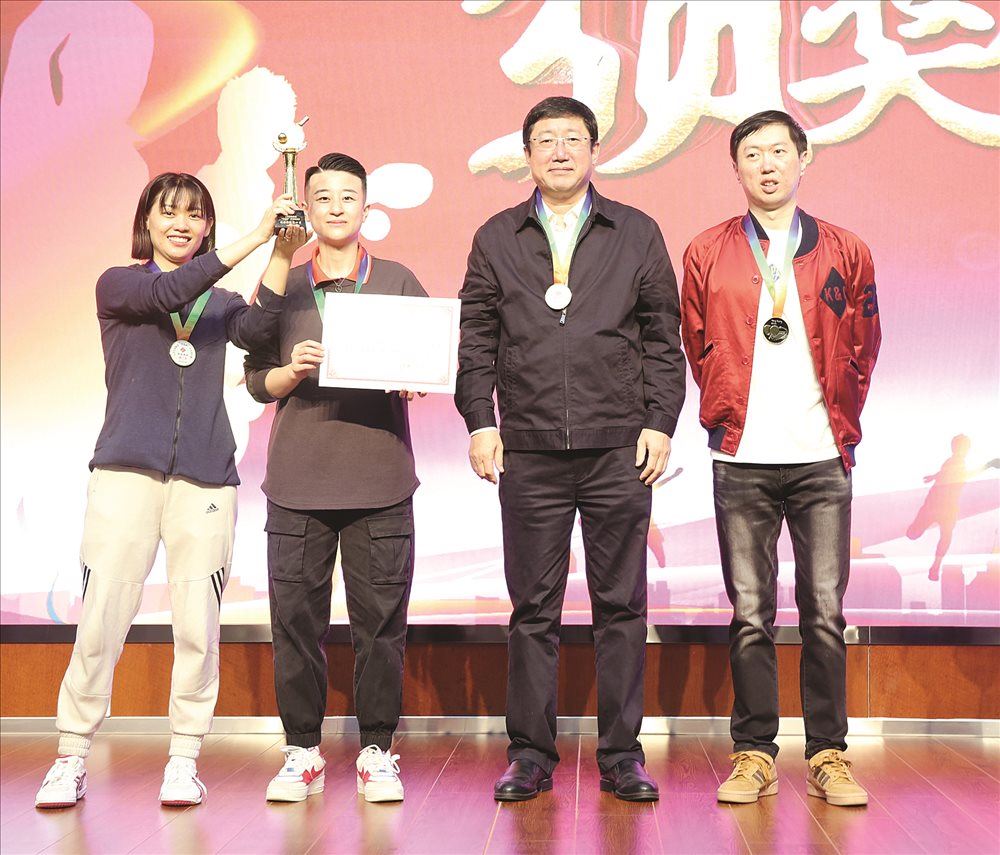 他指出,健康运动,快乐乒乓,运动员在比赛中展现出了团结协作、勇于拼搏的精神面貌和风采,希望大家将赛场上的奋力拼搏精神融入到工作中去,为集团高质量发展做出新的更多的贡献。