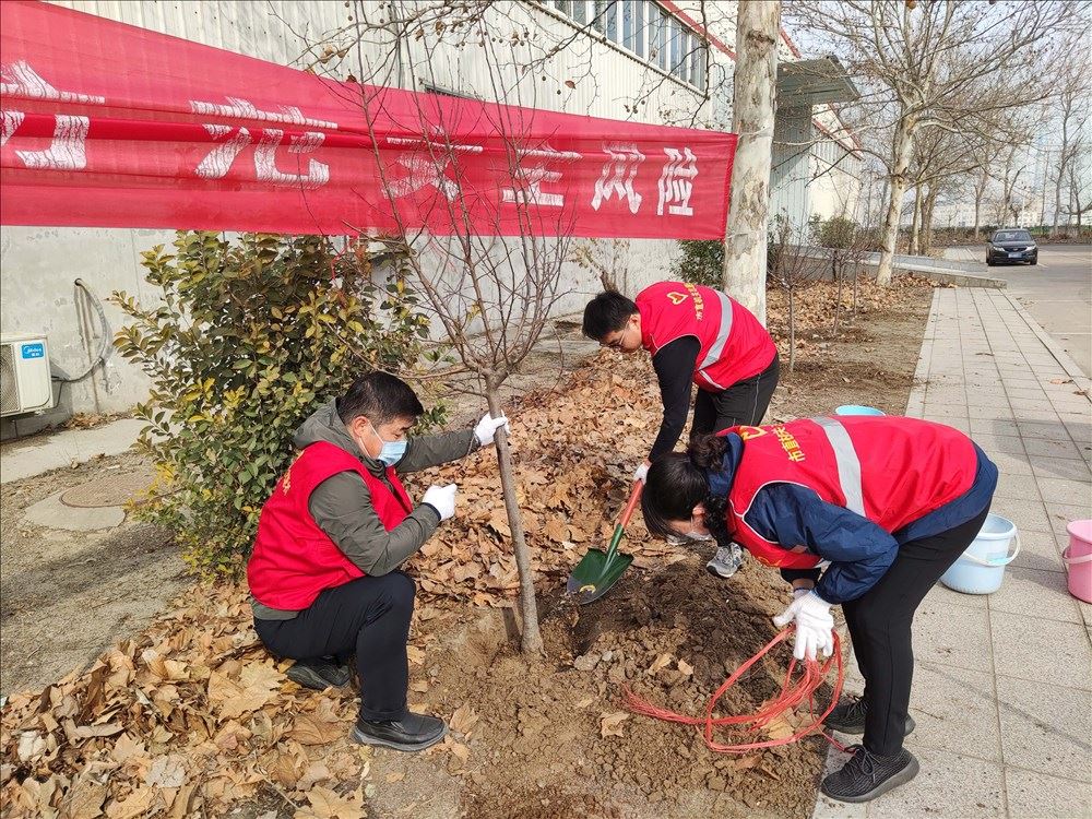 山东出版实业公司潍坊分公司党支部积极发挥党建引领作用,在新华物流园区组织开展“党建红·园区绿”义务植树主题党日活动,用实际行动践行“绿水青山就是金山银山”的生态理念,为美丽中国建设减碳添绿。