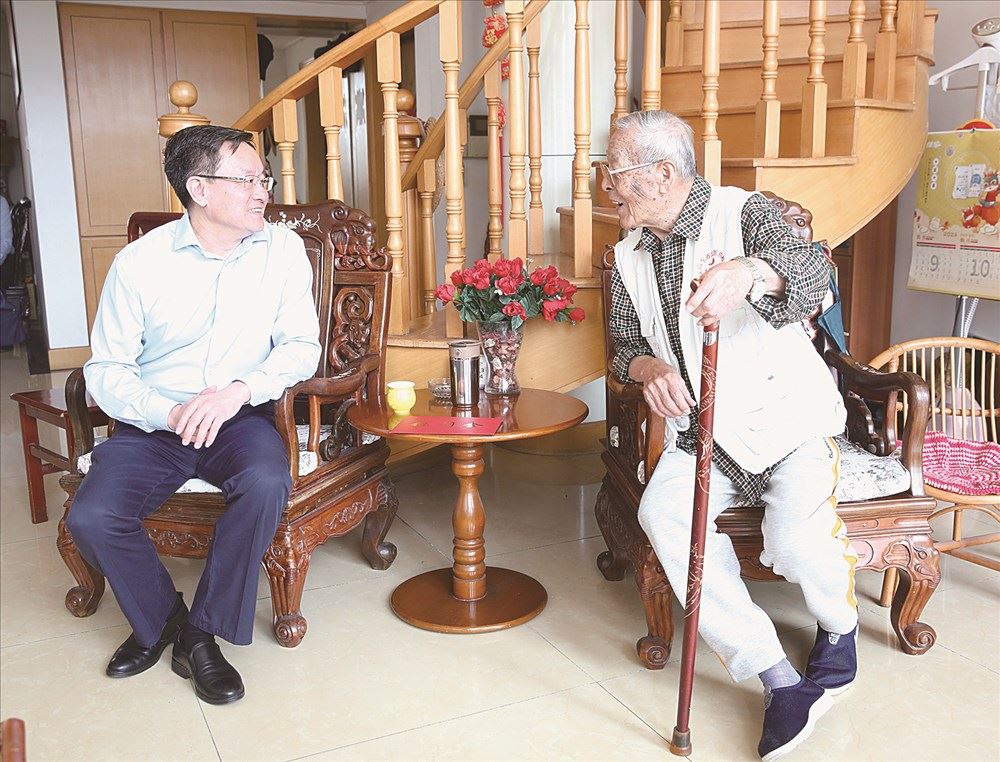 刘文强先后来到郭立恩、丁海源两位老同志的家中,与他们促膝交谈。共同回顾中华人民共和国成立75周年来走过的光辉历程和取得的伟大成就,特别是党的十八大以来,以习近平同志为核心的党中央带领全党全军全国各族人民推动党和国家事业取得的历史性成就、发生的历史性变革,以及进入新时代我们国家改革发展新成就新面貌。共同感悟时代进步,畅想美好愿景。“您们是集团的宝贵财富,感谢您长期以来对出版事业的支持。”刘文强的话语中充满了感激之情。“祝您健康长寿,阖家幸福。”刘文强握着老同志的手,送上最温馨的祝福。刘文强表示,集团的老干部、老党员是党的光辉历程的见证者、参与者,是集团事业赓续发展的亲历者、贡献者。集团广大党员干部将继承优良传统,弘扬老干部、老党员对党忠诚、勇于担当、无私奉献的精神,为集团高质量发展,实现“走在前 挑大梁”的目标不断努力。老同志们感谢刘文强和集团党委的关心爱护,希望集团党委坚持用习近平新时代中国特色社会主义思想凝心铸魂,不断推动出版事业迈上新台阶,再创新辉煌。