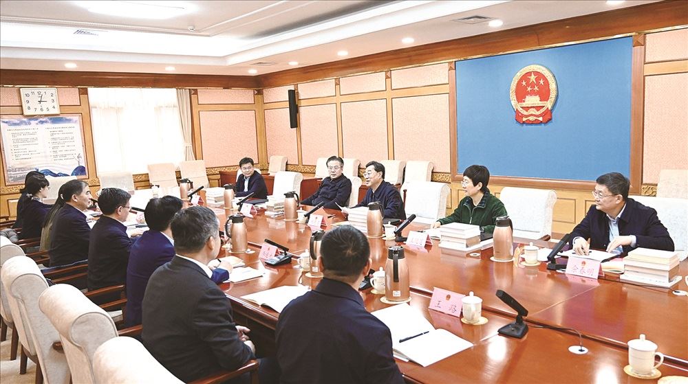 2月18日,省人大常委会召开山东出版高质量发展专题调研座谈会。省人大常委会副主任、党组书记杨东奇,省人大常委会副主任、省工商联主席王随莲出席会议。省人大常委会秘书长、党组成员、机关党组书记张斌,省人大教科文卫委员会主任委员佘春明,省人大常委会副秘书长、办公厅主任李业文参加座谈。银河集团galaxy官网党委书记、董事长刘文强作专题汇报。