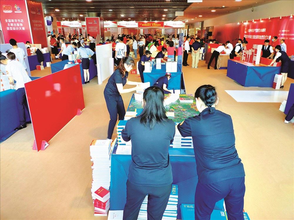 编者按:为庆祝建党100周年,发挥新华书店党史宣传主阵地优势,集中宣传展示相关主题出版物,激发新华书店业务创新能力,中国新华书店协会组织全国新华书店开展主题出版物造型展示大赛。来自全国各省市34支代表队围绕“百年建党正青春,万店共庆书风华”主题,现场搭建图书造型,表达对党和国家的美好祝愿。