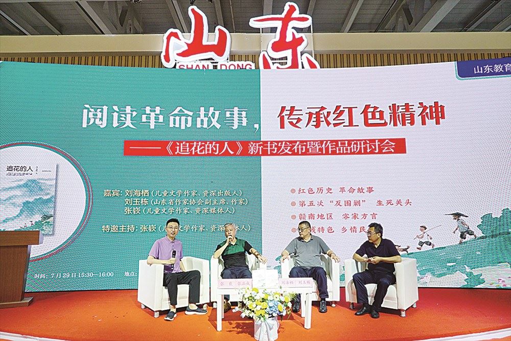 7月29日下午,山东教育出版社主办的“阅读革命故事,传承红色精神——《追花的人》新书发布暨作品研讨会”在书博会会场山东馆召开。