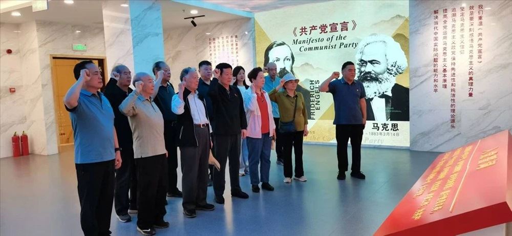 党员们走进广饶刘集爱国主义教育基地,这里是山东最早建立农村党支部的地方之一,也是首版《共产党宣言》中文译本的留存地。党员们通过一幅幅珍贵的历史照片、一件件饱含故事的文物,接受深刻的思想淬炼和精神洗礼。全体党员在党旗下重温入党誓词,铿锵有力的誓言在展厅内久久回荡,饱含着老党员们对党的无限忠诚与深厚情感,彰显他们在党爱党的坚定信念与使命担当。