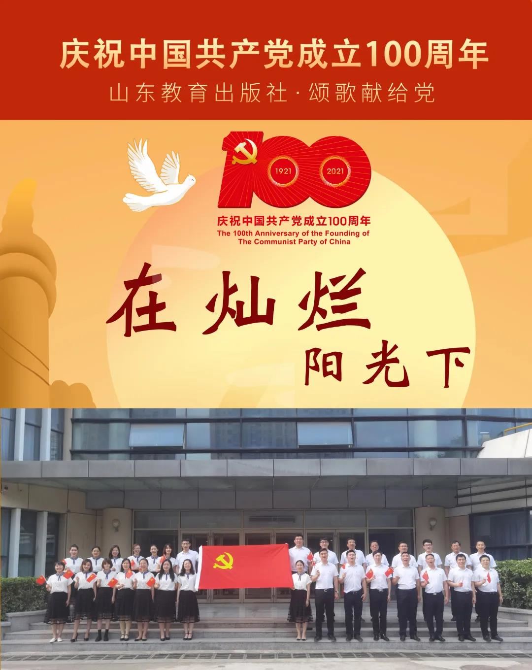 在中国共产党成立100周年之际,山东教育出版社党总支落实党史学习教育工作,颂扬中国共产党的丰功伟绩,积极响应集团“颂歌献给党”网络合唱比赛的号召,引导广大党员干部职工共抒爱党情怀、共话祖国新貌,增强爱党情感、弘扬民族精神,在党总支高度重视与精心组织筹备下,40余位共产党员、团员青年共唱歌曲《在灿烂阳光下》,献礼党的百年诞辰。