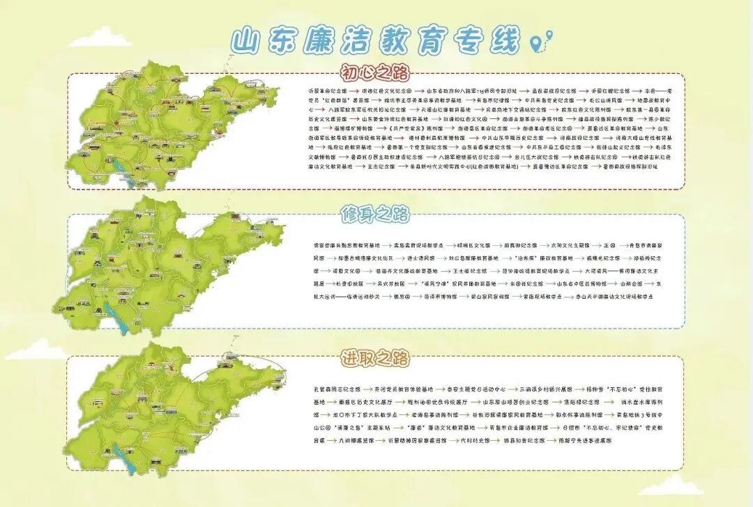 “线上”依托山东省纪委监委网站建设山东廉洁文化云地图,集中展示16市廉洁文化建设品牌体系、现有资源、特色做法及工作成效,推动廉洁教育资源数字化,让党员干部、群众能够随时随地“参观”体验,足不出户接受廉洁文化的熏陶;“线下”制作生动灵活的廉洁教育阵地手绘地图,以中华优秀传统文化、革命文化、社会主义先进文化分类,设计“修身”“初心”“进取”三条廉洁教育专线,为各级各部门开展廉洁教育、传播廉洁文化提供有效载体,让广大党员干部在“同频共振”中感悟初心使命、提升境界修养,不断增强廉洁从政、廉洁用权、廉洁修身、廉洁齐家的思想自觉,真正让廉洁成为日用而不觉的习惯。