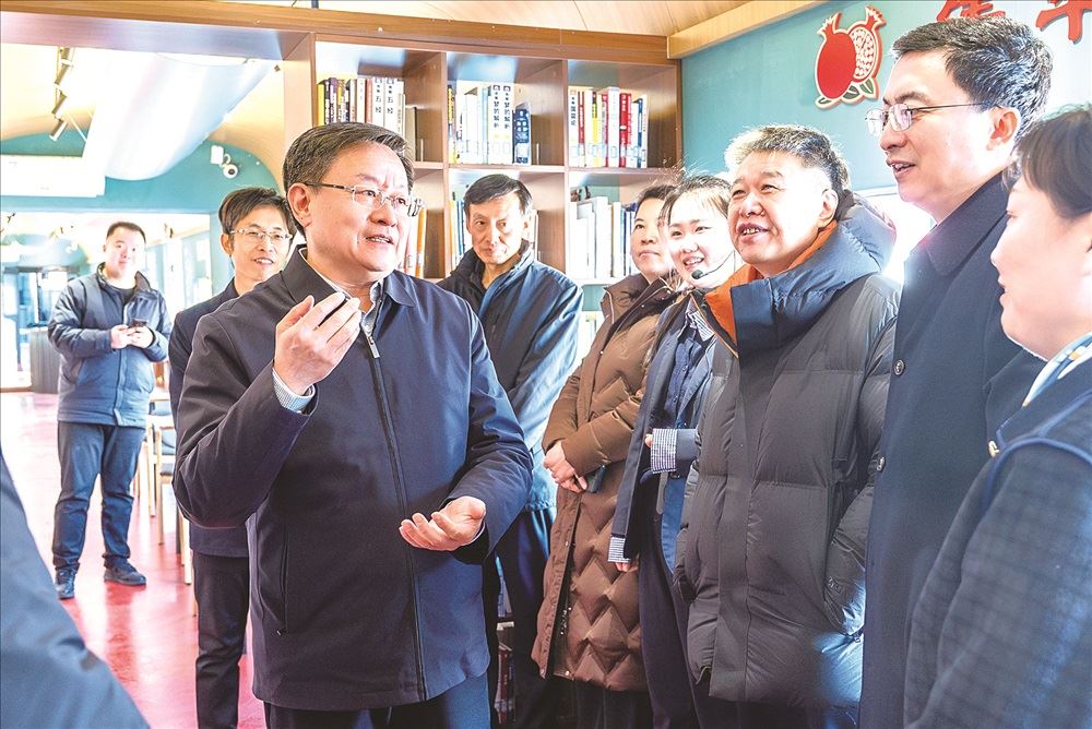 在新华智能低碳印刷基地,刘文强详细了解项目搬迁和生产经营安排,察看智能立体仓库、太阳能光伏、中央空调、集中供水、废水处理等环节的建设情况,观看流程演示,对项目的数智化运营提出了要求。他指出,要力争把德州基地打造为物联化、智能化的行业标杆,做成样板并在其他印刷基地推广,同时,新厂房的建设要充分考虑员工的生活、工作需求,打造人性化的工作环境。在明德书屋中心广场分馆、拾忆园分馆,刘文强详细了解书屋的空间设计、图书借阅、读者服务、文化活动等情况。他强调,城市书房是服务全民阅读、融入公共文化服务体系的关键载体,要积极响应省委宣传部号召,把城市书房运营融入全省文化书院建设当中,打造具有新华书店特色的文化书院品牌。在鲁北发行中心(二期)文化综合体,刘文强了解了项目建设进度、地理位置、周边配套设施、设计规划等情况。他指出,文化综合体业态布局要立足书店实际,积极融入当地城市发展总体规划,加强招商运营,确保实现预期目标。实地调研后,刘文强与相关单位进行了座谈,听取了新华印务德州分公司、书店集团德州分公司的工作汇报。刘文强指出,印刷企业要时刻保持危机感,新基地要围绕绿色、低碳、智能的深度融合,以“人机互动、机机互联、机物互联、物物互联”为目标,既要配备先进的生产设备,更要注重智能软件建设,整体推进智能化升级;要进一步优化功能分区、工艺流程、动线设计等,科学布局,智慧高效管理;要提前做好职工技术培训、智能模拟训练和实操演练,建成国际先进、国内一流的智能化印刷领军企业。新华书店肩负着党的宣传阵地、全民阅读灯塔、文化传承纽带的重任,要进一步向基层延伸,做好文化书院建设,打通“文化服务最后一公里”;要创新服务模式,激活文化空间,培育自有核心品牌,成为业态创新的孵化器;要强化数字赋能,创新供给方式,做好线上线下有机结合;要深化政企合作,双向赋能,实现社会效益与经济效益双丰收。