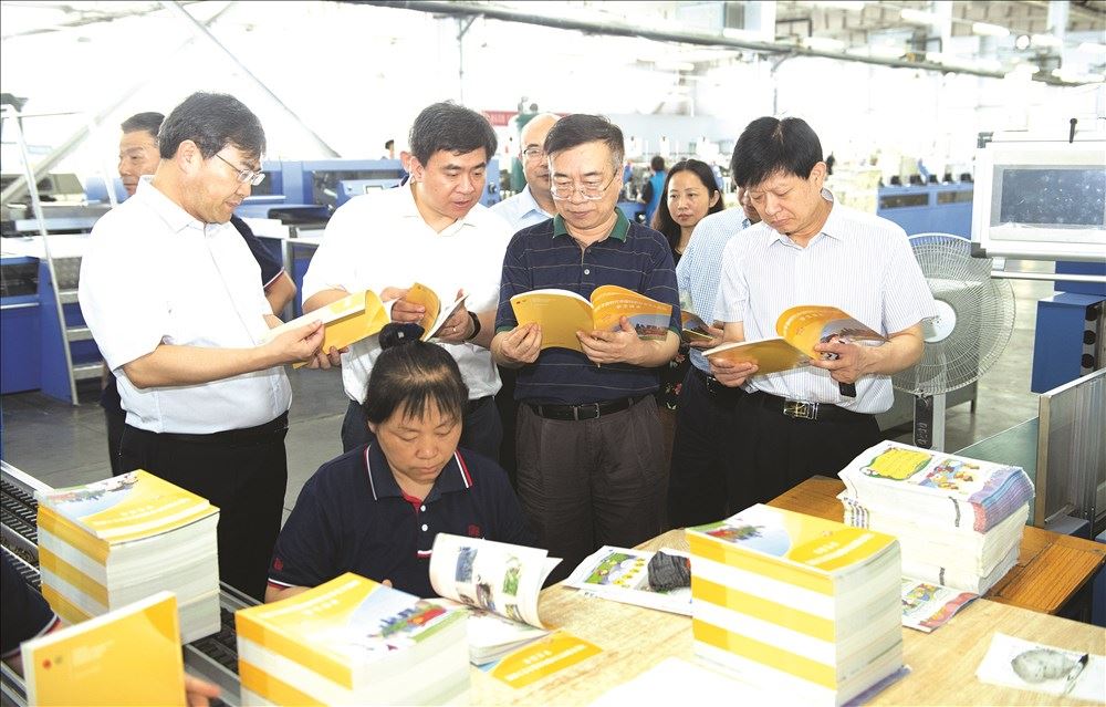 7月27日,教育部教材局局长田慧生、副局长刘宏杰,人民教育出版社社长黄强,人民出版社社长蒋茂凝等一行15人,赴山东新华印务德州分公司,对《习近平新时代中国特色社会主义思想学生读本》(以下简称《读本》)印制发行工作进行专项督查。集团董事长张志华,股份公司总经理郭海涛、副总经理宫杰等陪同检查。