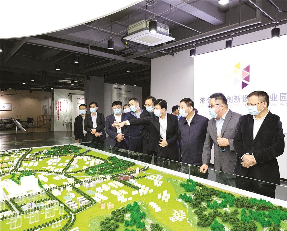 座谈会前,白玉刚一行来到济南国际创新设计产业园、山东教育出版社、山东新铧文旅发展集团,深入了解融合发展、主业创新、文旅研学的运营情况。