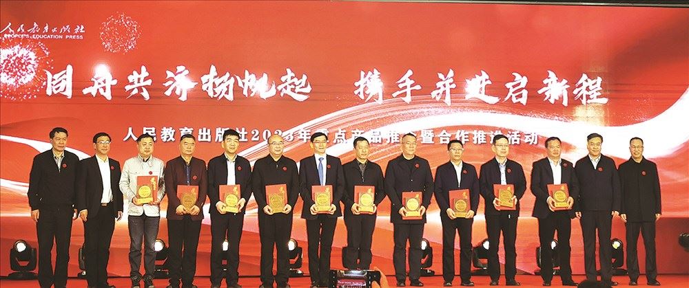 2月24日,人教社在北京召开“同舟共济扬帆起 携手并进启新程--人民教育出版社2023年重点产品推介暨合作推进活动”。股份公司总经理郭海涛、常务副总经理宫杰、副总经理杨文军及教育产业部、书店集团相关负责人参加了会议。