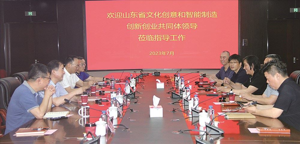 7月5日下午,山东工艺美术学院原党委副书记苗登宇等一行6人赴共同体研究院调研交流。股份公司总经理申维龙、副总经理范波等一同调研。