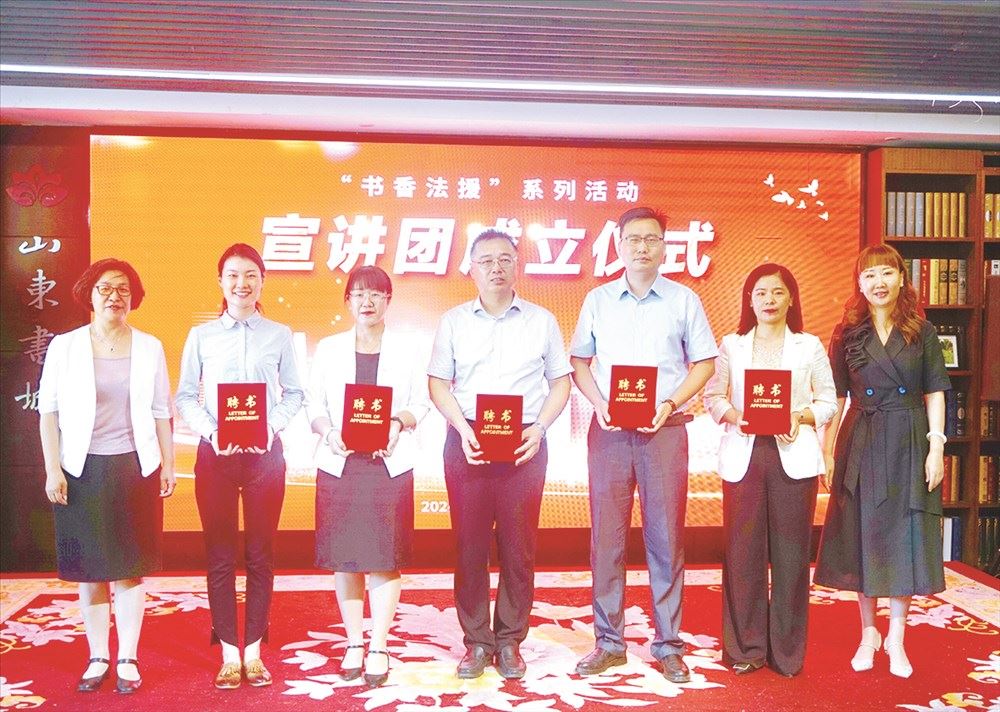 近日,济南市法律援助中心与书店集团济南分公司联合开展“书香法援”活动。济南市司法局二级巡视员王翠香,济南市法律援助中心主任孙彦华,济南分公司党委书记、总经理刘静等出席活动。
