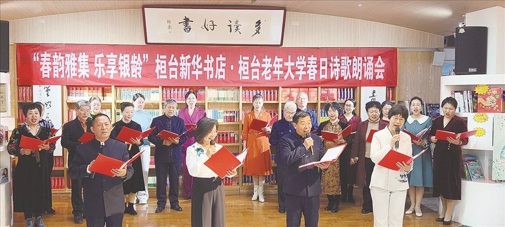 近日,书店集团桓台分公司携手桓台县老年大学打造了春日诗歌朗诵会,充分展现学员们“老有所学、老有所乐、老有所为”的精神风貌。在三月的暖阳里,二十余位银龄学员以声传情,将对春日的礼赞与生活的热爱凝练成诗歌。合诵《写给春天的诗行》以复调朗诵展现时光交响,《四月的纪念》通过声部交替构建诗意空间,创新编排的太极扇舞《梅花赋》更将传统武术与经典诗词熔铸成流动的画卷。活动现场,老年学员们用沉淀了岁月质感的声音,在《菩萨蛮·黄鹤楼》的吟唱中触摸历史肌理,借《我是青年》的诵读重燃青春激情,最终以《春天的邀请》集体创作完成了一场跨代际的艺术对话。