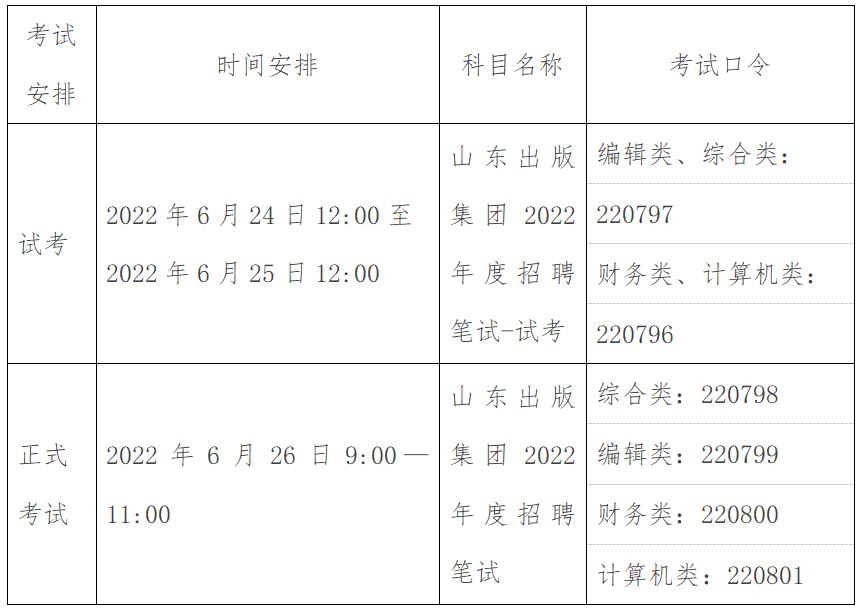 2022年度招聘笔试安排