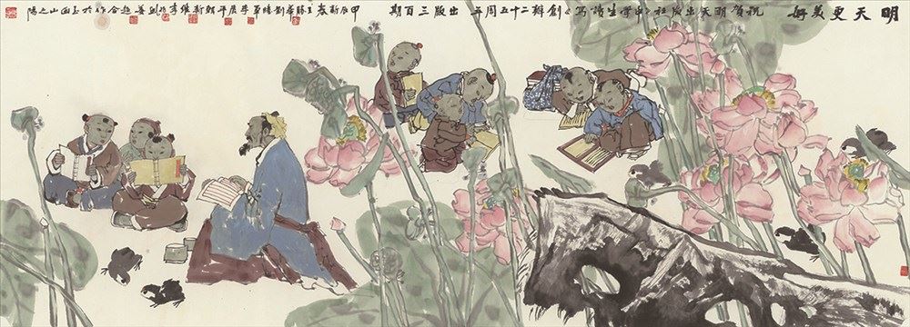 2024年是《中学生读写》创刊25周年,25年来,《中学生读写》共出版300辑,陪伴了一代又一代中学生的成长。为庆祝《中学生读写》创刊25周年,明天出版社举办了插图画家笔会,中国美术家协会会员王胜华、刘胜军、李丽平、韩新维、李兆虬、姜超六位老师倾情奉献,共同绘制了八尺巨作“明天更美好”。