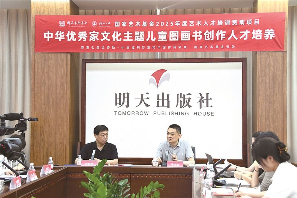 近日,济南大学国家艺术基金项目——“中华优秀家文化主题儿童绘本创作人才培养”项目组成员来到明天出版社,双方围绕“中华优秀家文化”的图画书创作这一主题展开热烈研讨。活动旨在搭建专业少儿出版与高校艺术人才培养的桥梁,共同探索“中华优秀家文化”在童书中的创新表达。