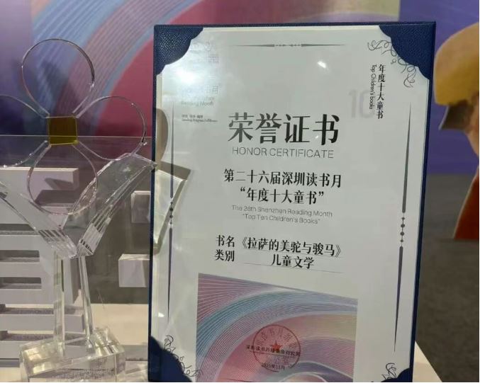 11月9日,第二十六届深圳读书月“年度十大童书”评选颁奖典礼暨揭晓礼在深圳举行,明天出版社的《拉萨的美驼与骏马》入选“年度十大童书”,《木拉提爷爷,你去哪儿?》入围“年度十大童书”30强。