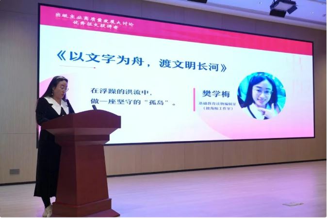 研讨会上,优秀征文获奖者从不同角度分享了他们在出版实践中的所思所悟,进一步汇聚思想精华,共话出版未来。有的编辑结合挖掘潜力作者、打磨精品绘本的亲身经历,阐释了对内容为王的坚守;有的聚焦数字教材、智慧出版,畅谈对数智赋能出版未来的探索;还有的从优质资源集聚、品牌塑造、市场运营等维度,提出了推动出版主业提质增效的独到见解。这些精彩分享,不仅回答了“坚守什么”的初心追问,更明确了“创新什么”的实践路径,承载着“留下什么”的责任担当,展现出新时代山东教育出版人坚守初心、勇担使命、锐意创新的精神状态,并成为推动教育社高质量发展的“思想火种”。