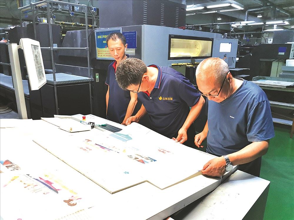 新华印务公司泰安分公司的工作人员在认真检查《读本》的印制质量