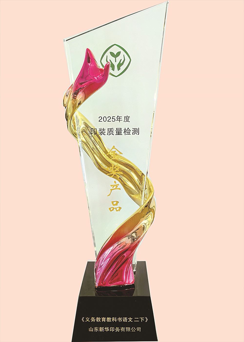 在7月10日至11日召开的2025年人民教育出版社自印图书印制工作会议上,新华印务公司选送的教材产品获得表彰。其中,《义务教育教科书语文 二年级下册》荣获“金奖”,《物理 九年级》等5种教材获评“优质品”。