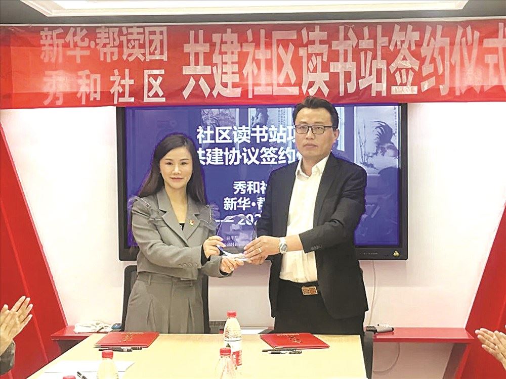 4月14日,新铧教育“百万家庭阅读习惯养成计划”走进秀和社区,举行共建“社区读书站”签约仪式。
