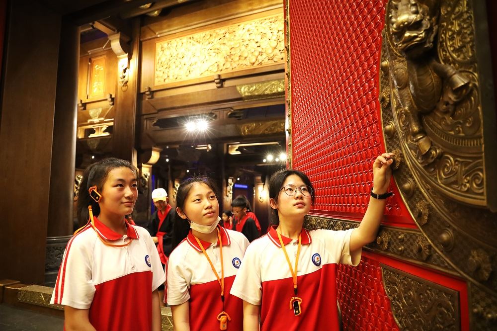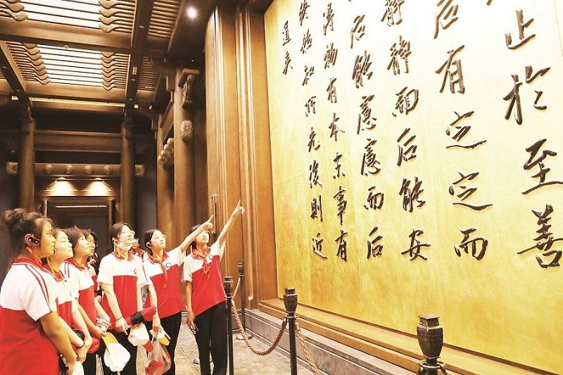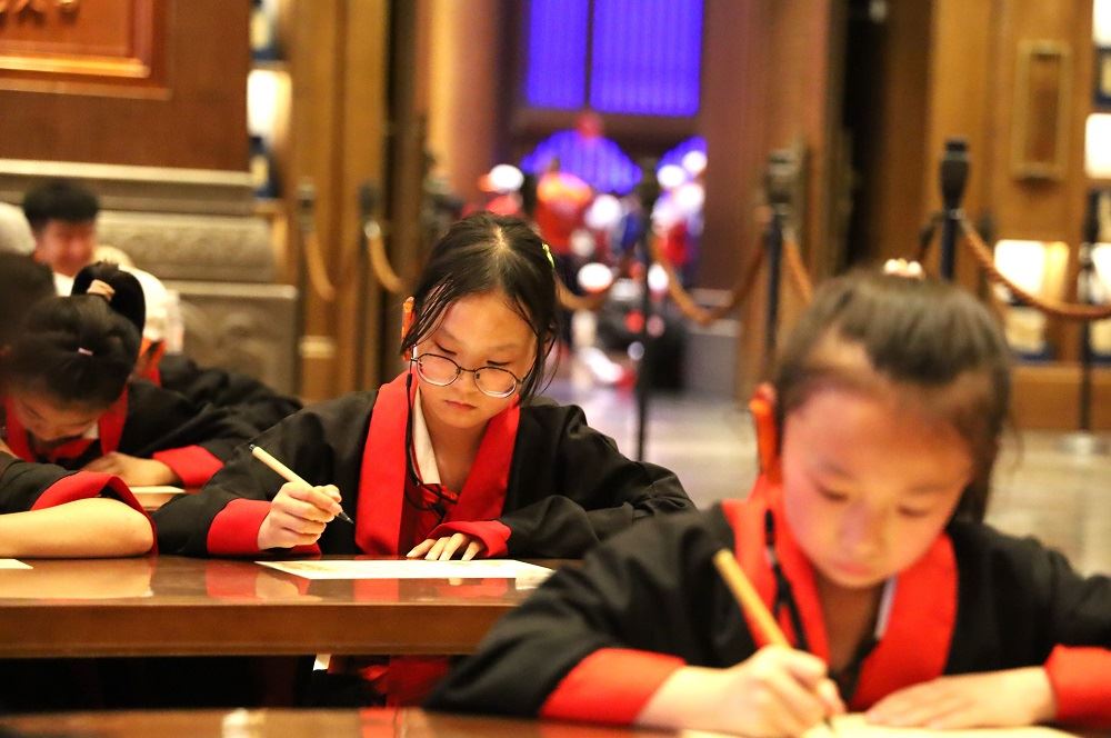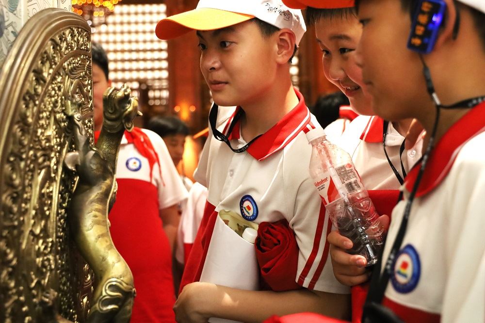 在台儿庄分公司研学老师的带领下,同学们欣赏了短片《大哉孔子》,现代高科技手段展示出来传统的文化精髓,带给同学们强烈的震撼;馆中的展品,如“商代兽面纹铜鼎、战国黄玉马、明代孔子燕居像、孔子讲学图轴”等,一件件历史文物,无声的向同学们讲述着曾经发生的故事;严格按照古代拜师礼的程序、制式、规格进行的“礼拜孔子,尊师重道”拜师礼,庄严、肃穆的气氛让现场所有的师生完全沉浸其中……
