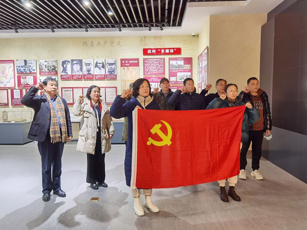 《大众日报》的历史,是我们党和国家从抗战以来百折不挠、开拓进取历程的见证与缩影。陈列馆内悬挂的许多图片和文稿真实记录了集团与《大众日报》深厚的历史渊源,支部书记魏捷在现场以微党课的形式为大家深情讲述了那些“过去的人” 和“过去的事”。一代又一代的新闻出版人始终坚持中国共产党的领导,坚持党性与人民性相统一,坚持做党的政策的传播者和党的历史的记录者,把对党的忠诚和信仰、对人民的赤诚和厚爱融入文字、定格成影像,激励着一批又一批年轻人自觉肩负起历史使命,与新时代同向同行,成长为党的伟大事业的建设者和接班人。党员们在党旗下重温入党誓词,厚植爱党爱国情怀,提升干事创业、继往开来的使命感和责任感。党员们纷纷表示,要进一步提高政治站位,加强理论学习,发挥专业优势,以实际行动践行“四力”,感党恩、跟党走、守初心、办实事,做好时代的发声者,当好群众的服务员。