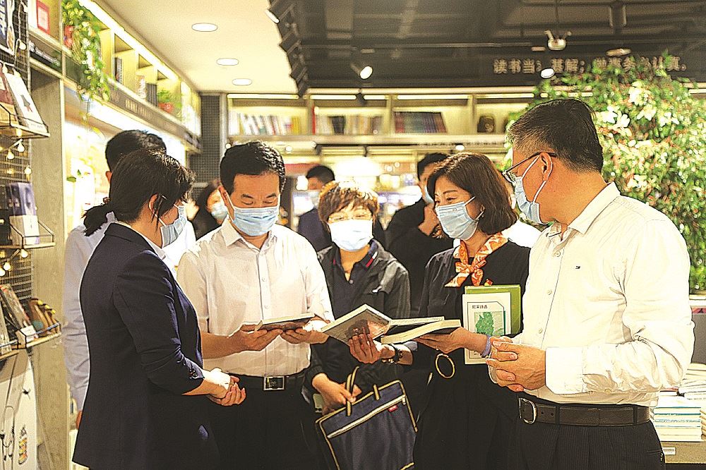 指导组现场考察了书城运营管理的相关情况,重点了解党建智慧书屋的情况,并对书城支部开展党史学习教育的学习记录、自查问题清单、为民办实事清单等资料作了查验。在听取了书城党支部负责人关于党建及党史学习教育工作情况的汇报后,顾建华作了指导讲话。