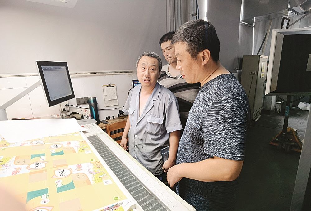 各分公司也根据实际情况,紧紧围绕教材印制这一中心任务,以高度的责任感和敬业精神,全员上阵,严密组织,全力以赴保障教材生产。济南分公司行政人员全部投入生产,一切以生产为重,调动人员到生产线,统一安排,跟机生产。德州分公司提出充分发挥党员干部的模范带头作用,自觉加班加点,为了稳定生产,防止员工中暑,及时为生产一线的员工准备了水果、雪糕、绿豆汤等降温食材和防暑药品。泰安分公司提出公司打破行政与车间的界限,装订与印刷的界限,轮转与平台的界限,骑订与胶订的界限,公司人员流动,补充缺员岗位,所有人员心往一处想,劲往一处使,确保圆满完成教材印制这项光荣的政治任务。