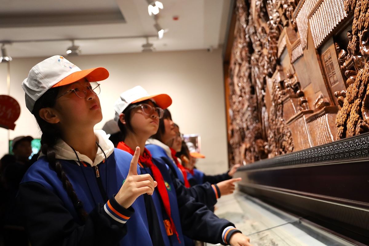 迎着深秋的晨曦,研学的学生们首站走进滕州博物馆。在滕州博物馆,“鲁班与墨子”主题展区成了同学们的“探索乐园”。看着鲁班发明的曲尺、云梯模型,听着墨子“兼爱非攻”的思想故事,大家忍不住惊叹古代先贤的智慧。在“青铜为魂、陶瓷为脉、玉器为韵”的展厅中开启时空之旅。青铜厅聚焦商周礼器,广大师生近距离的观摩象征政权庄严的青铜鼎、铭刻千年乐章的司马楙编钟,感受“三国五邑之地”的历史厚重。陶瓷厅从北辛文化红陶壶到唐宋青白瓷,串联起东方陶瓷艺术史诗,学生通过文物纹饰解读古代工艺智慧。